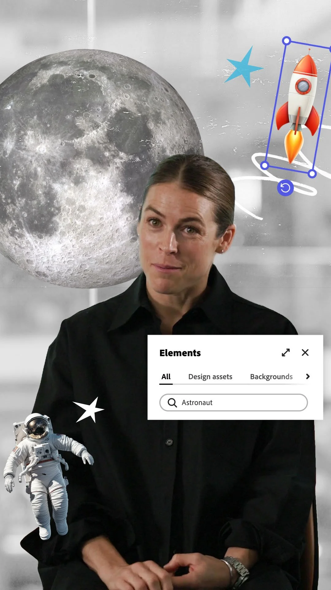To build the look the team wanted, images were sourced from Adobe Stock and Adobe Express, mixing in UI elements from the company’s software. The patches were designed by smaller artists Adobe commissioned, and implemented to further tie the connection between sport and art.